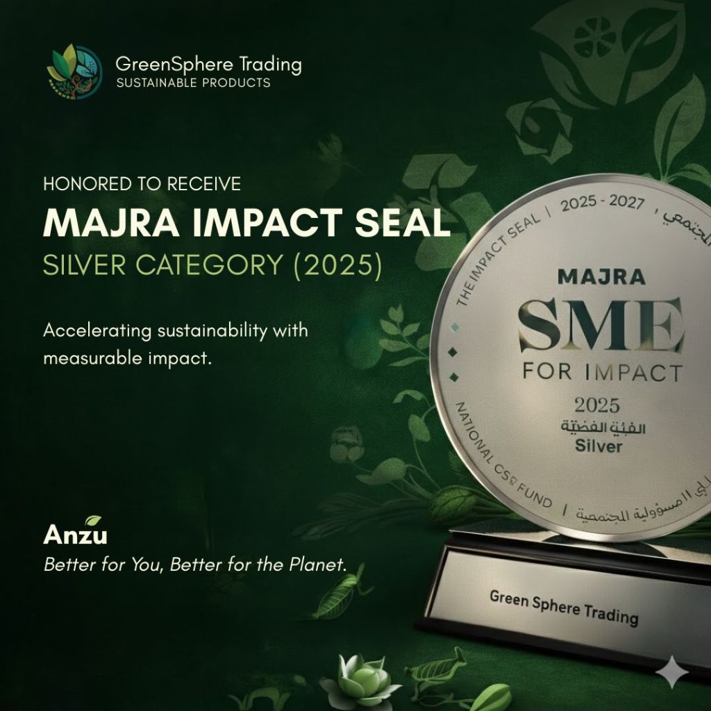 We are proud to announce that Anzu®, the sustainability-focused brand under GreenSphere Trading, has been awarded the Majra Impact Seal (Silver Tier) for SMEs in the 2025–2027 cycle. This prestigious national recognition is bestowed by Majra – National CSR Fund, the UAE federal entity dedicated to supporting corporate social responsibility (CSR), environmental, social, and governance (ESG), and sustainable impact practices nationwide.